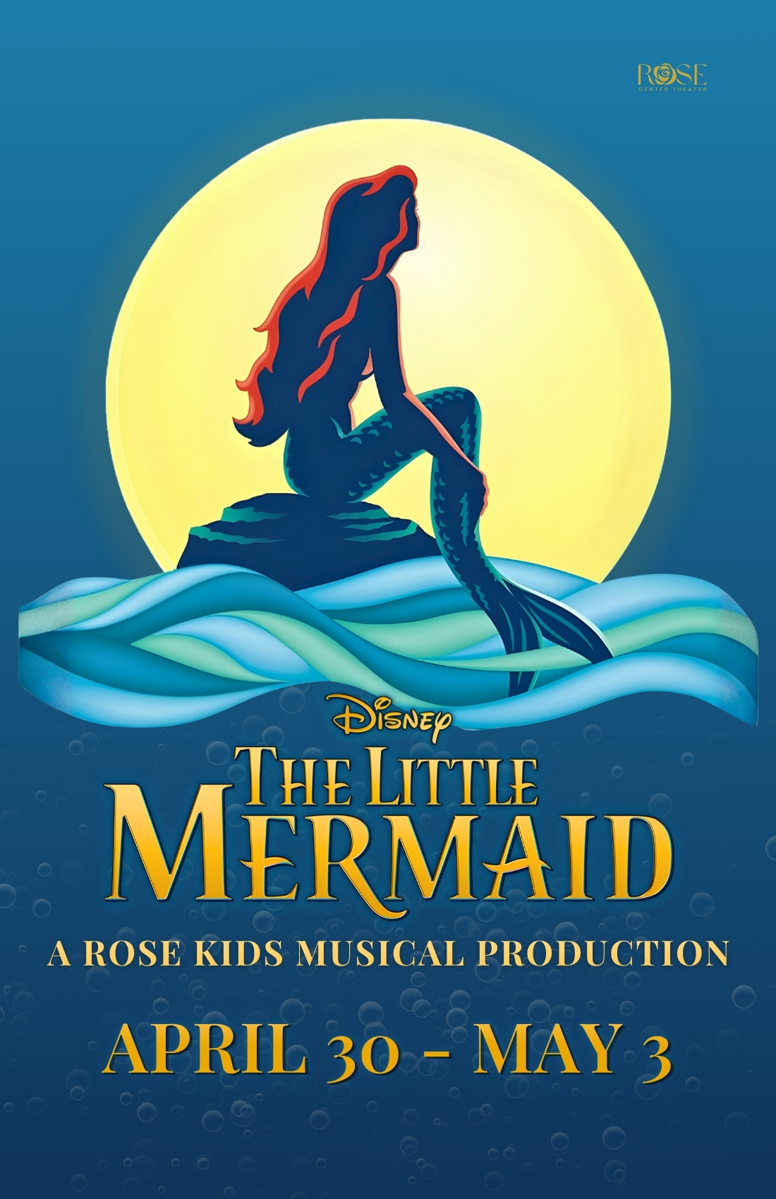 Experience the wonder and magic of Disney's The Little Mermaid, brought to life by the talented young performers of Rose Kids, the Rose Center Theater's acclaimed youth theater program. Featuring an entirely youth cast — all performers are 19 years of age and under.